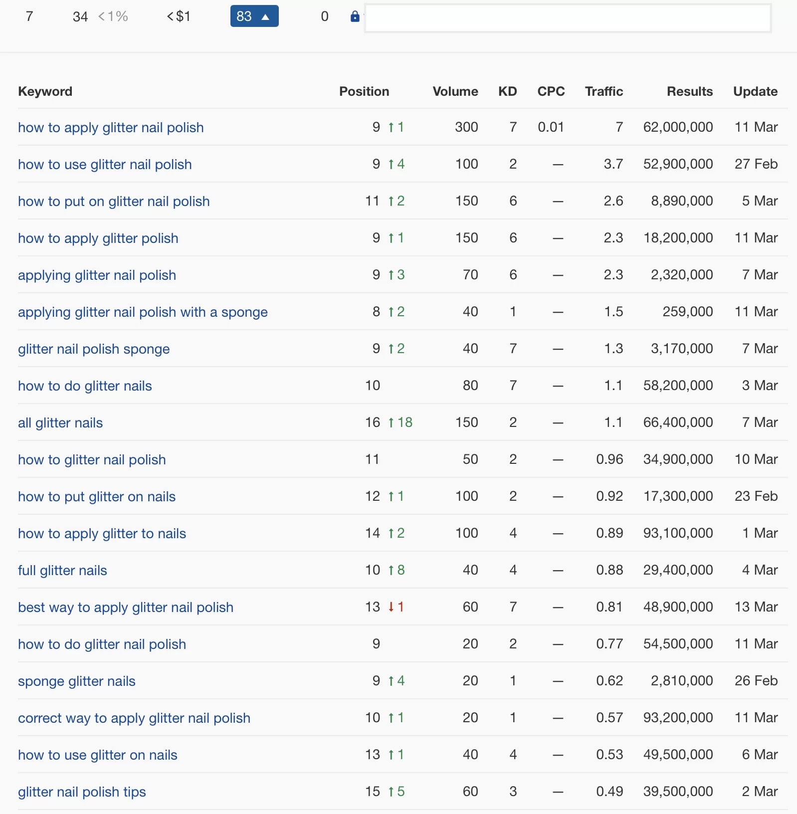 Since we begin optimising the site with specific types of nail lacquer, results has been improving and most of the targeted keywords are on the first page after 6 months.